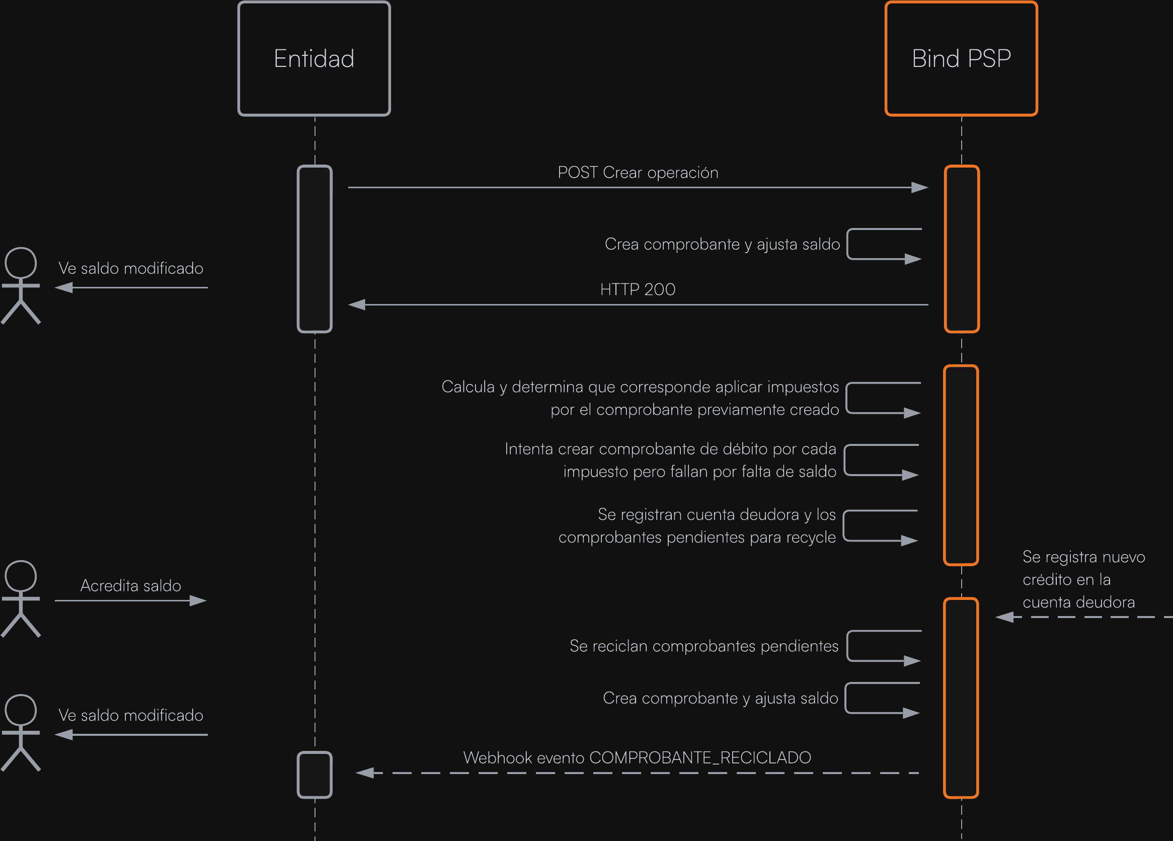Estos comprobantes de impuetos se crean configurados para ser tomados en cuenta por un recycle. Esto implica que si al momento de crearlos no se pueden aplicar porque la cuenta no tenía el saldo suficiente, se reintentará su creación al momento en que la cuenta reciba un crédito. (Ver ¿Cómo funciona el recycle?)