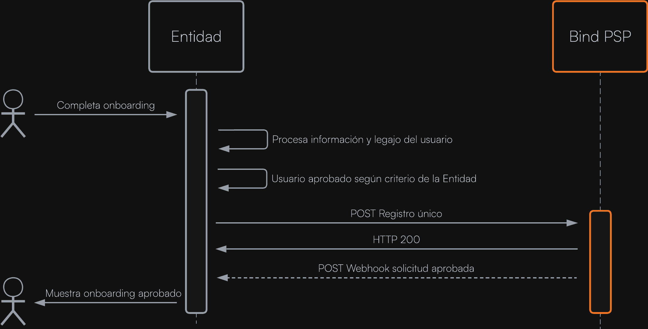 Esta solución permite validar en Bind PSP a un usuario analizandolo según los criterios indicados para el caso de uso y así aprobar el mismo para resultar en el alta de una cuenta, CVU, cuenta comitente, etc.